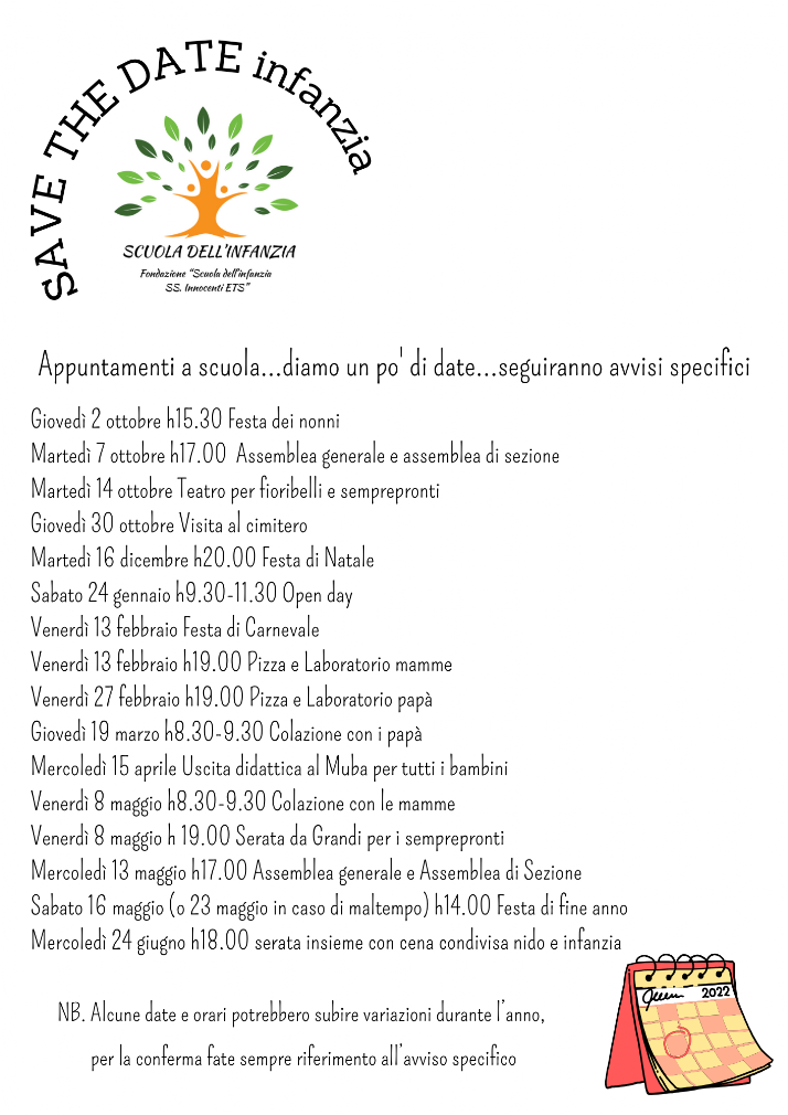 Clicca per scaricare il calendario di ambientamento 2025 per i nuovi frequentanti alla scuola dell'infanzia